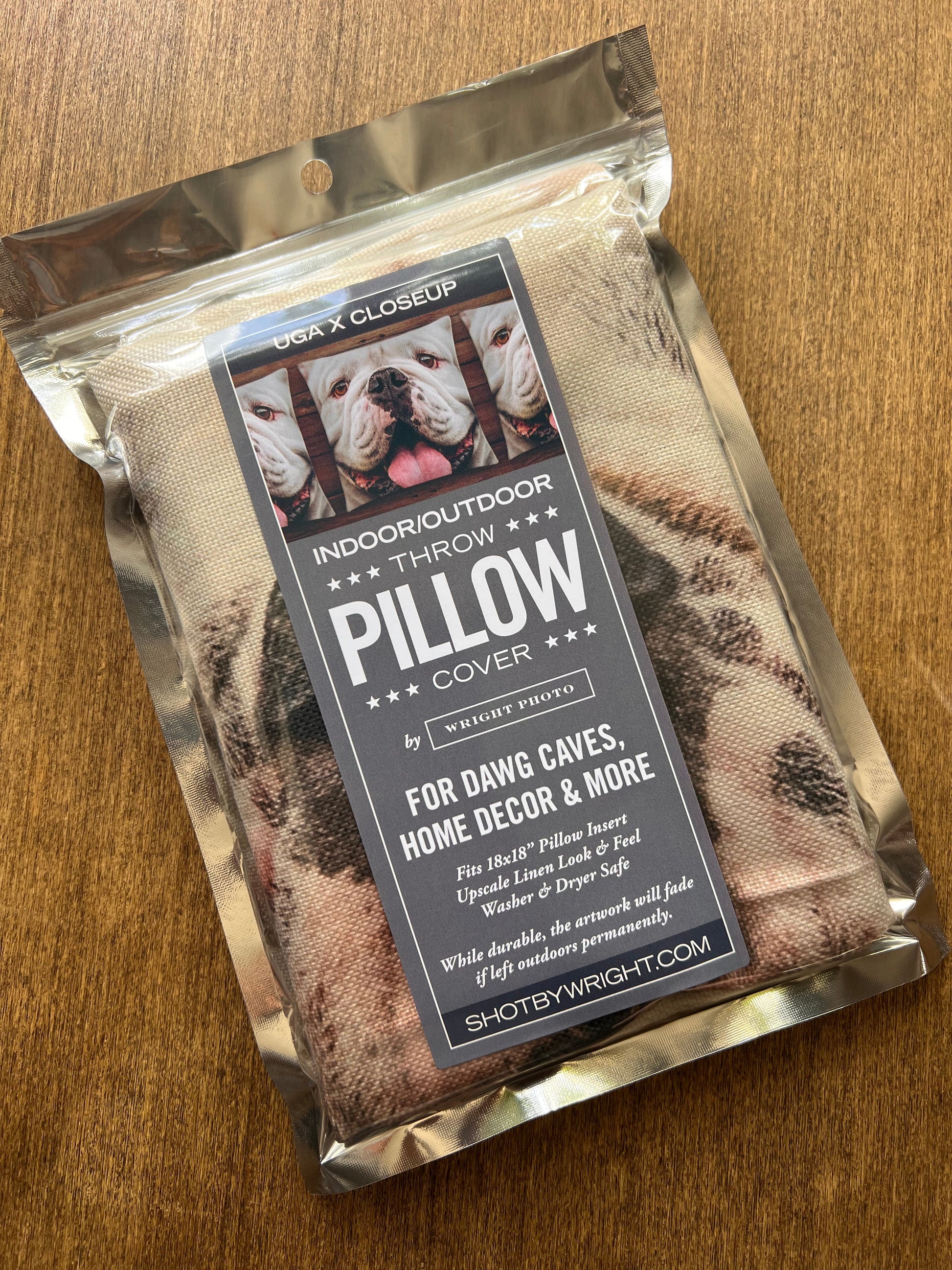 Have you ever wanted to give Uga a big squeeze? Of course you have. Well now you can, with an Officially Licensed Wright Photo Uga X Mascot Closeup Throw Pillow. This pillow is made of durable, textured poly-linen fabric that has an upscale feel and will provide years of joy for any UGA alumni or football fan.